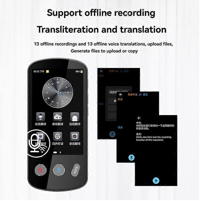 - 【Offline-Notfallübersetzung】Bitte laden Sie die Offline-Übersetzungsfunktion vorab herunter, um Englisch, Chinesisch, Japanisch, Russisch, Koreanisch, Deutsch, Spanisch, Französisch, Italienisch, Niederländisch und Portugiesisch zu unterstützen. Einfache Verbindung mit WLAN oder Smartphone-Hotspot, keine SIM-Karte oder App erforderlich, funktioniert mit Bluetooth-Headsets