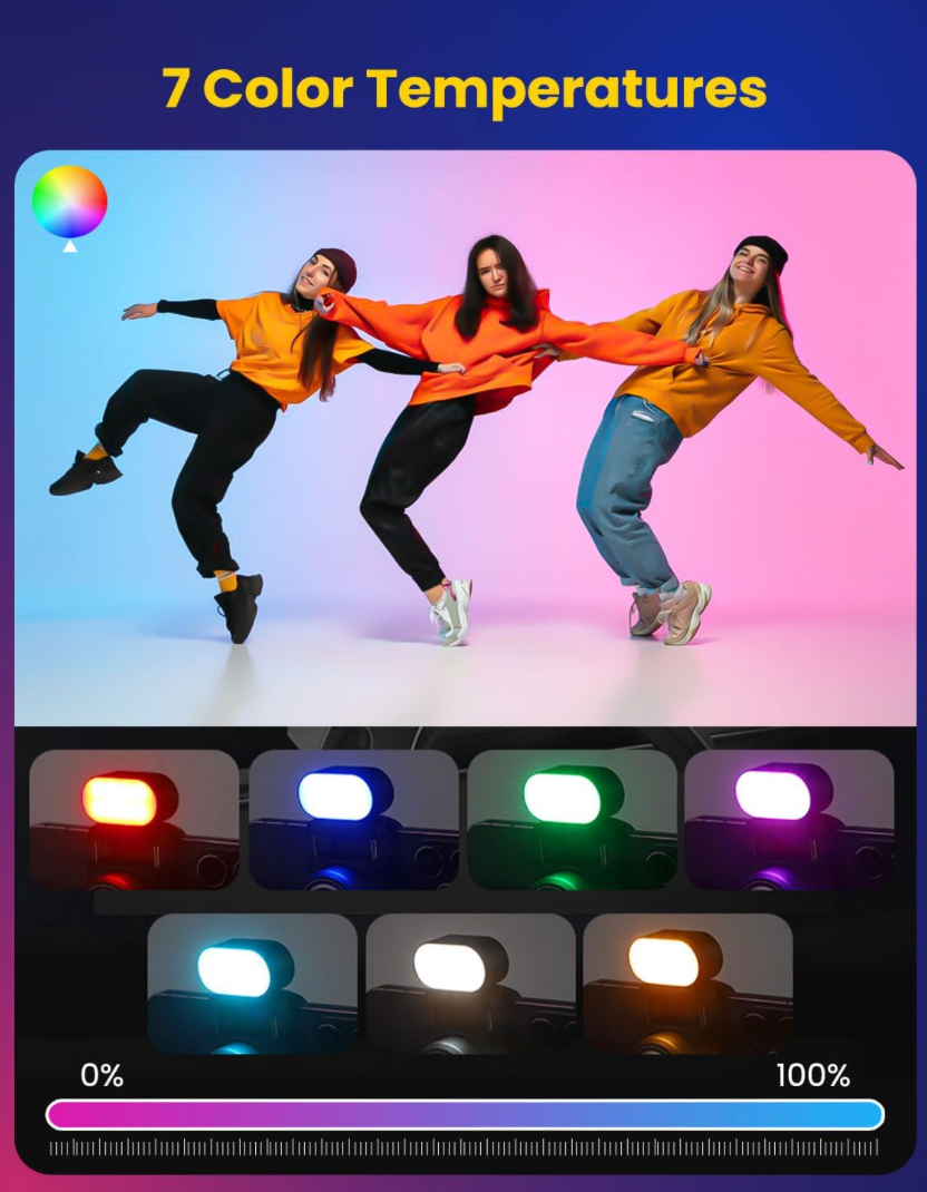 AOCHUAN Magnetic RGB LED Light, 7 Color Temperature, 3 Brightness Adjustment, 180 Mins Long-Lasting, Gradient Mode, Flash Mode 180 Fill Light, Suitable for AOCHUAN stabilizer AC L20