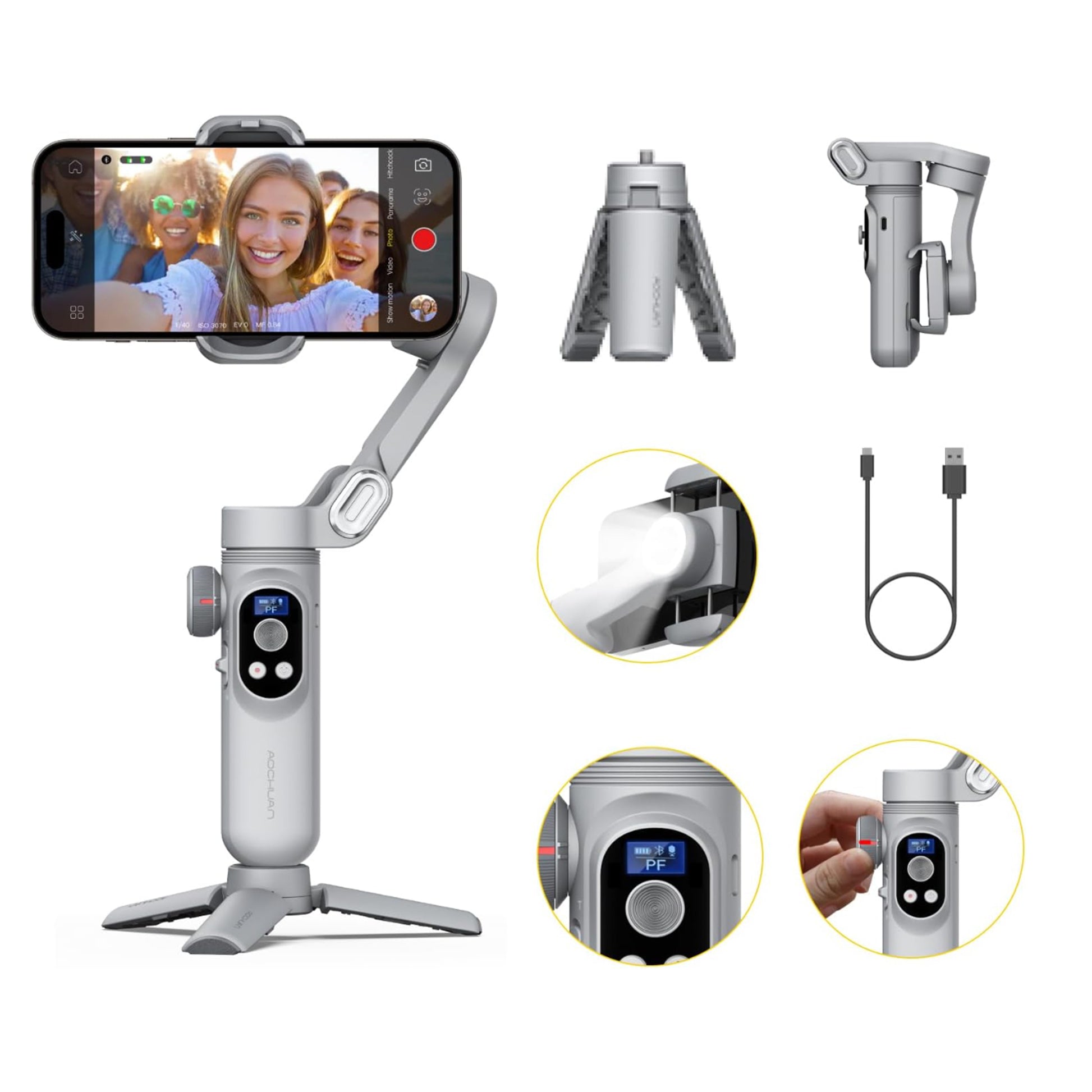 - [Stabil und flüssig] Das AOCHUAN-Gimbal hilft Filmern mit dem 3-Achsen-Design und dem verbesserten 7.0-Anti-Shake-Algorithmus dabei, stabilere und flüssigere Videos zu erstellen. Die Anti-Shake-Funktion des Gimbal-Stabilisators verbessert die Qualität der Videos erheblich, was für Social-Media-Ersteller wie Vlogging für YouTube, TikTok und mehr eine unverzichtbare Ausrüstung ist.