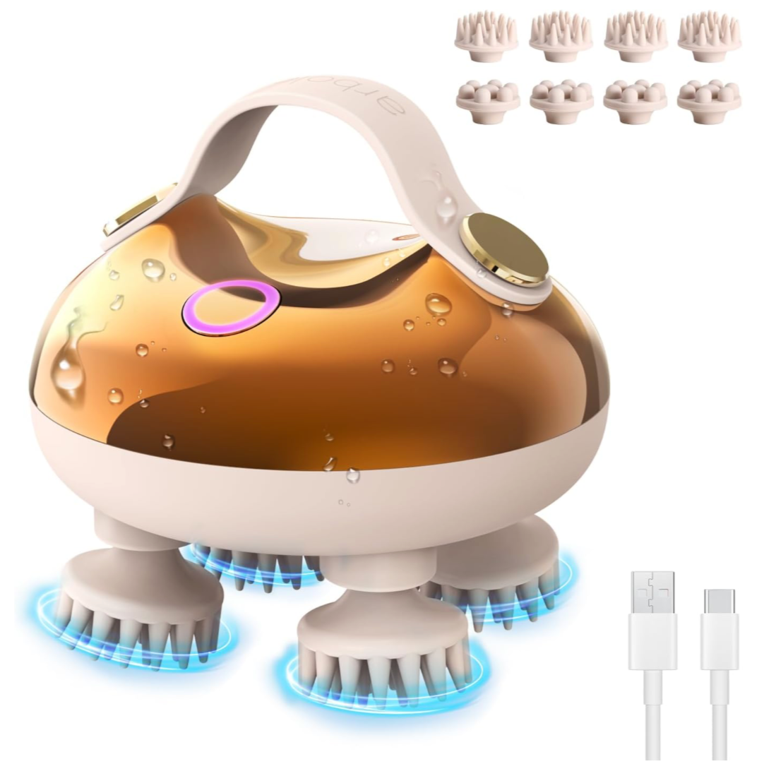 Elektrisches Kopfmassagegerät, Kabelloses Handmassagegerät, Kopfhaut-Massagegerät IPX7 wasserdicht mit 4 Massageköpfen und 3 Massagemodi, für Ganzkörpermassage,HundeköRper,Haarwachstum