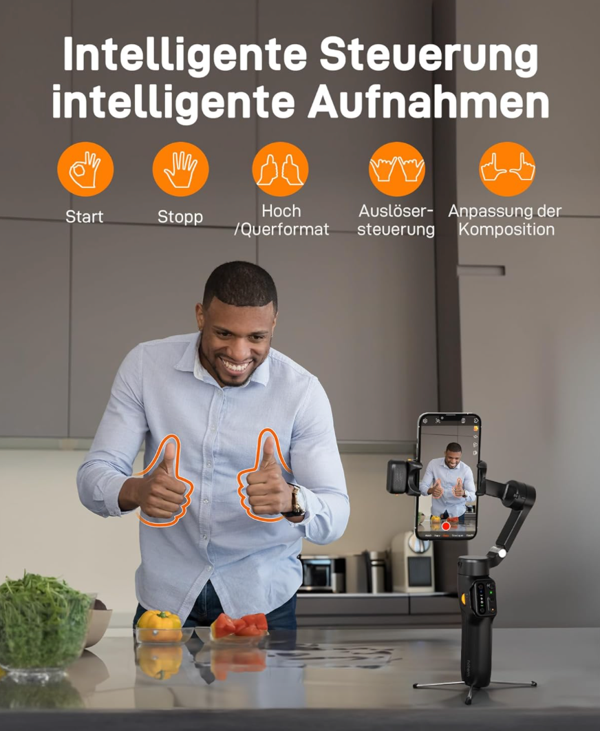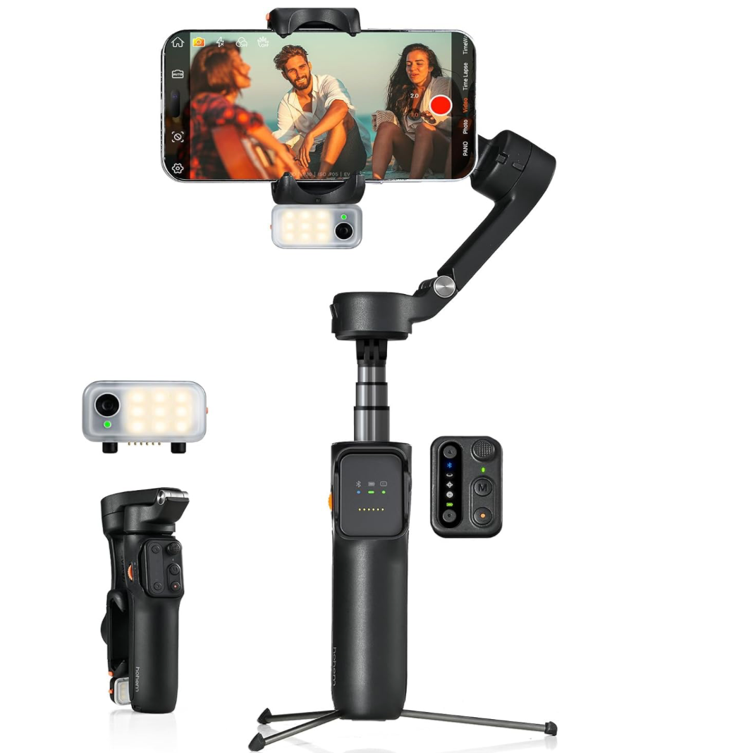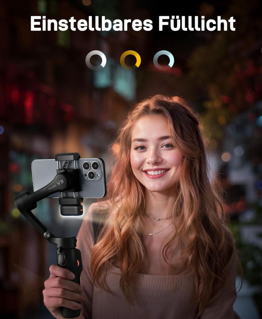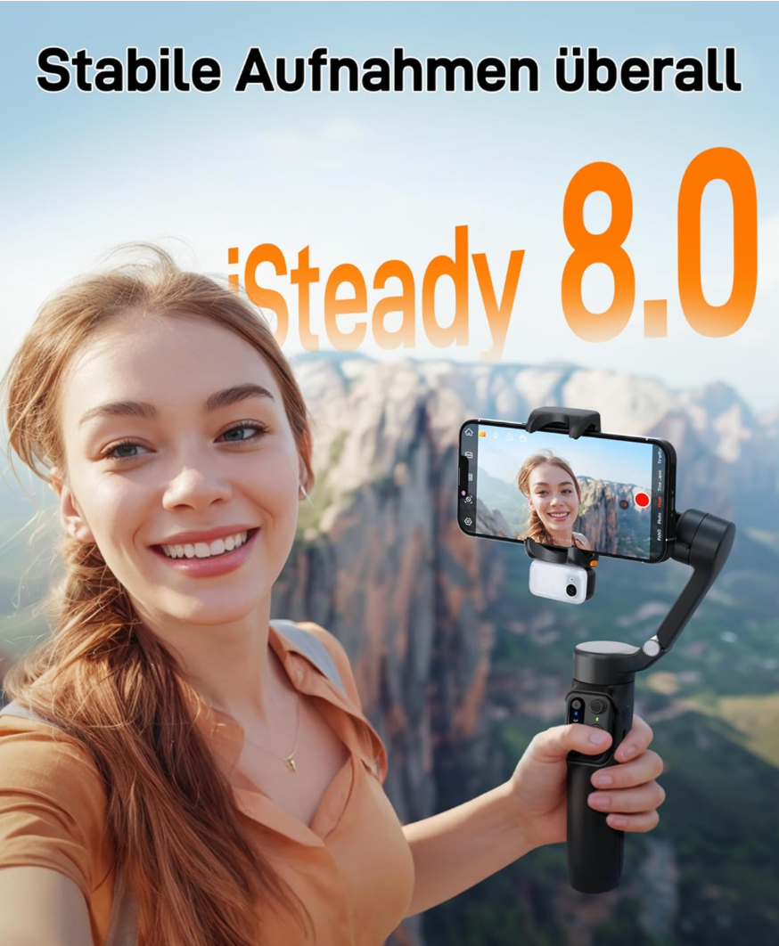 hohem iSteady V3 Gimbal Smartphone - Upgraded 3-Achsen Gimbal Stabilisator, Magnetischer AI-Tracker, Abnehmbarer Controller, Built-in Extended Pole & Tripod, Foldable Gimbal für Live Streaming, Vlog