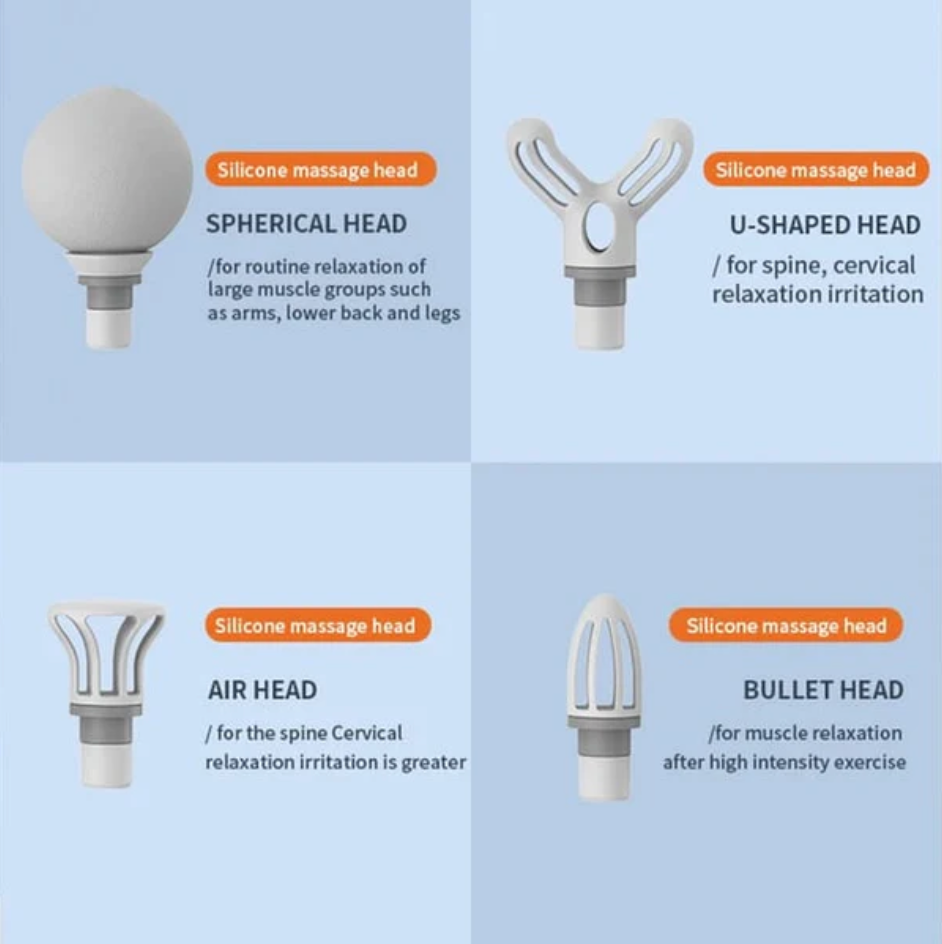 Umfassende Massage: Mit 4 austauschbaren Köpfen erreicht dieses Klopfmassagegerät jeden Muskel und sorgt für ein wohltuendes Erlebnis.