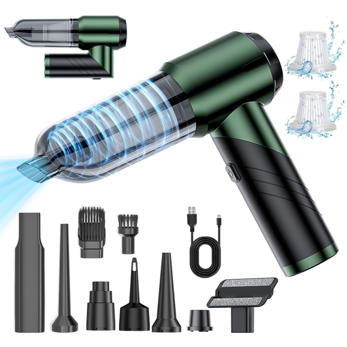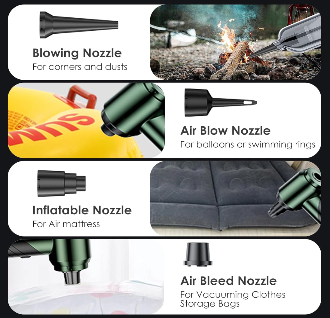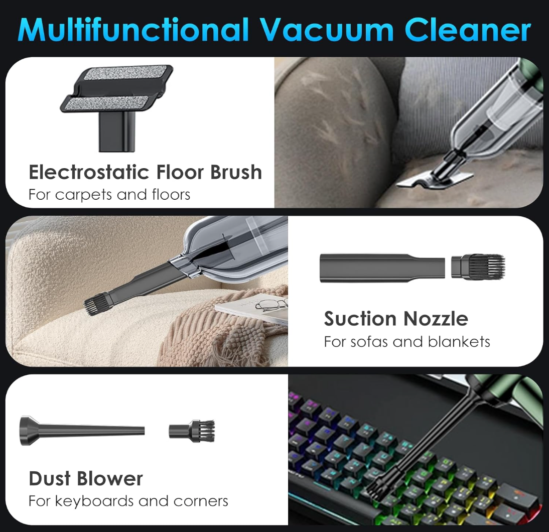 - 【Multifunktionaler Einsatz】Der Mini Staubsauger verfügt über eine Vielzahl von Zubehörteilen und kann zwischen 4 Modi umgeschaltet werden: Saugmodus, Staubblasmodus, Vakuumversiegelungsmodus und Blasmodus. Sie können damit Sofas und Autositze absaugen, Tastaturstaub abblasen, Aufbewahrungsbeutel für Kleidung absaugen und Luftballons und Luftmatratzen aufblasen