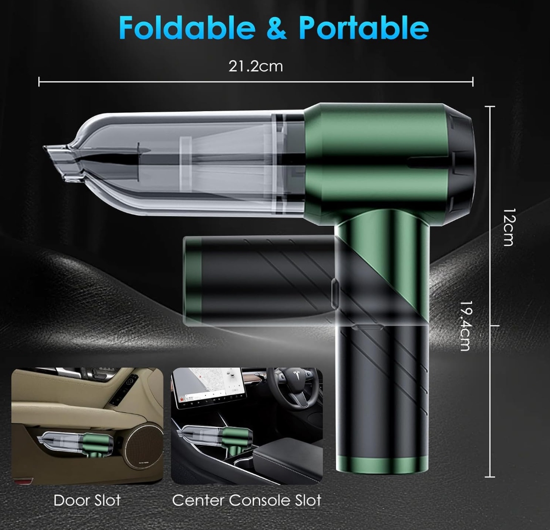 Handstaubsauger, 15000Pa Faltbar Handstaubsauger Akku, Autostaubsauger Kabellos, Multifunktionale Mini Staubsauger, Wiederaufladbarer, mit Zubehör, Waschbar HEPA-Filter, für Auto/Büro/Haus