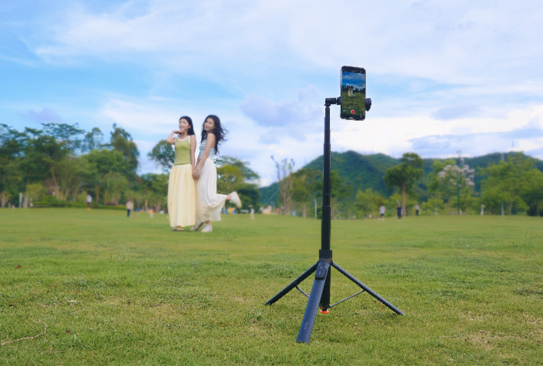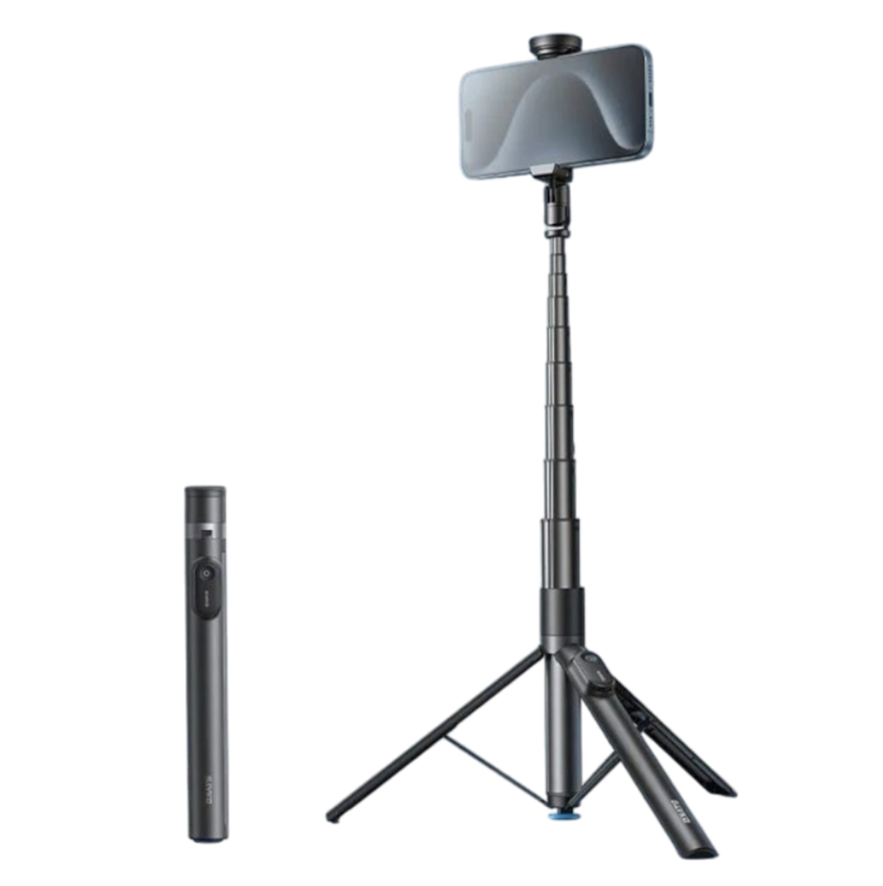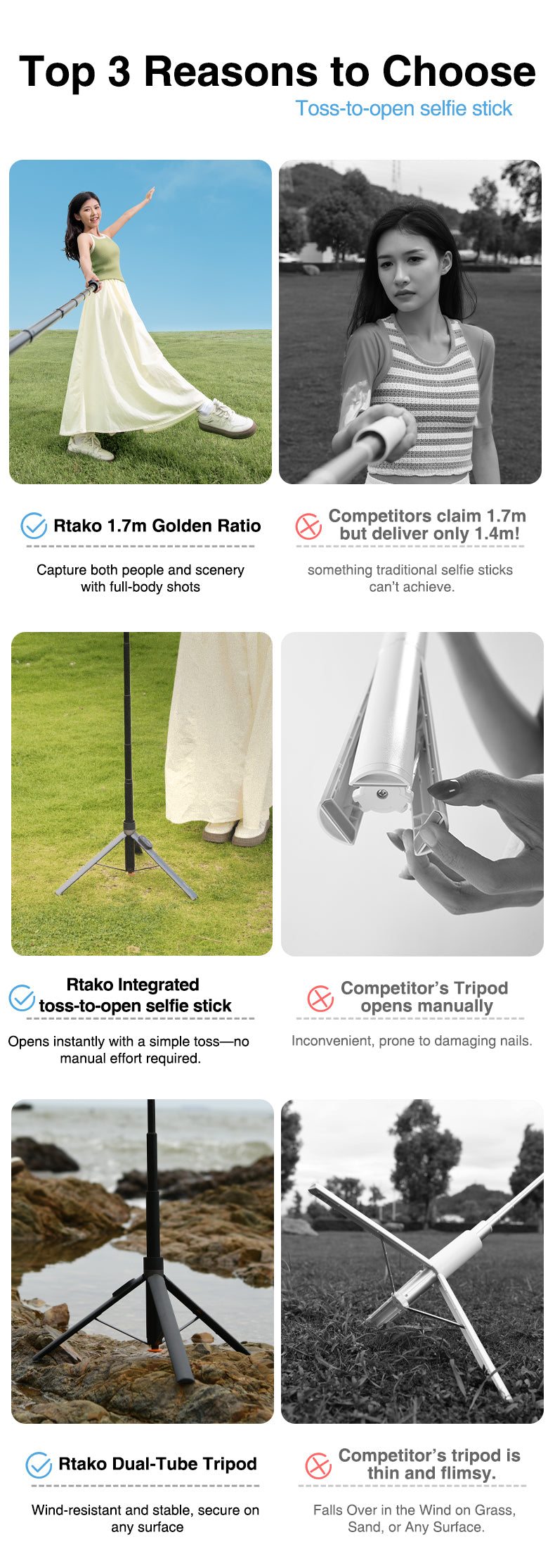 RTAKO RZP001 - AB226 170CM Selfie Stick Stativ, Ausziehbar All-in-1 Stativ Handy Einbeinstativ aus Aluminium mit Kabelloser Fernbedienung&10 Teleskopstange, Drehbar Handyhalter, Stative für iPhone/Android-Schwarz