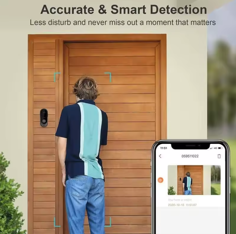 2. Objektiv: Diese Video-Türklingel verfügt über ein Ultra-High-Definition-Kamera-Objektiv und ein 125°-Weitwinkel-Objektiv, um Ihre Haussicherheit rund um die Uhr zu schützen.