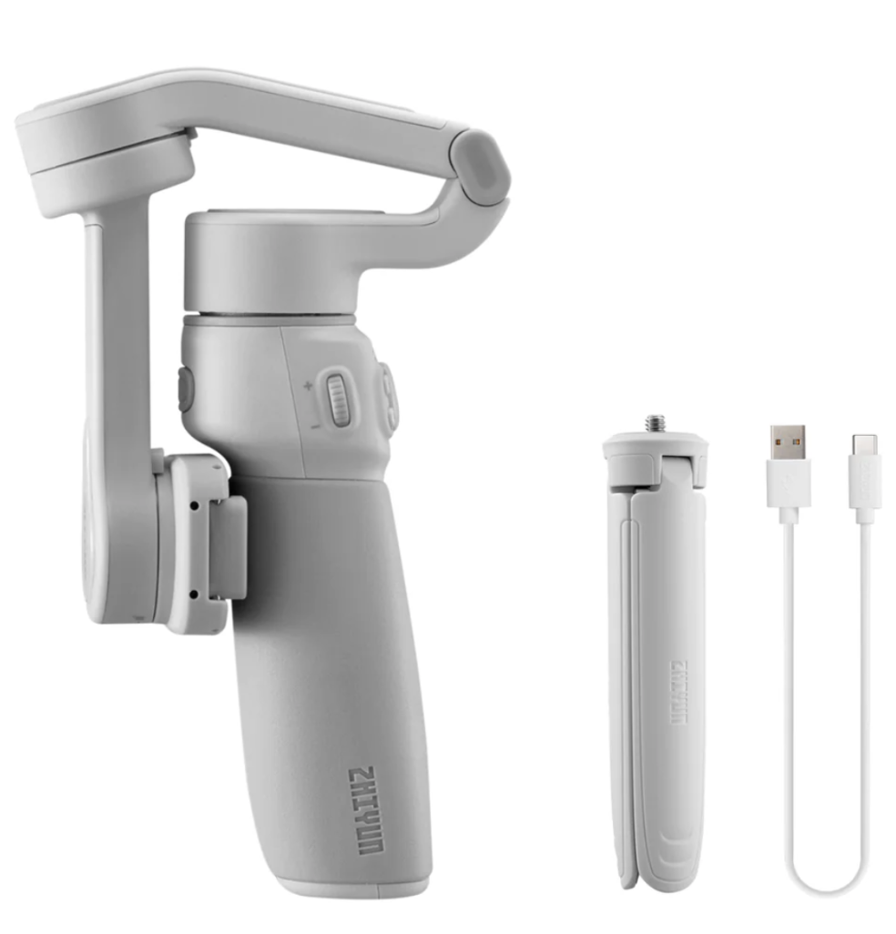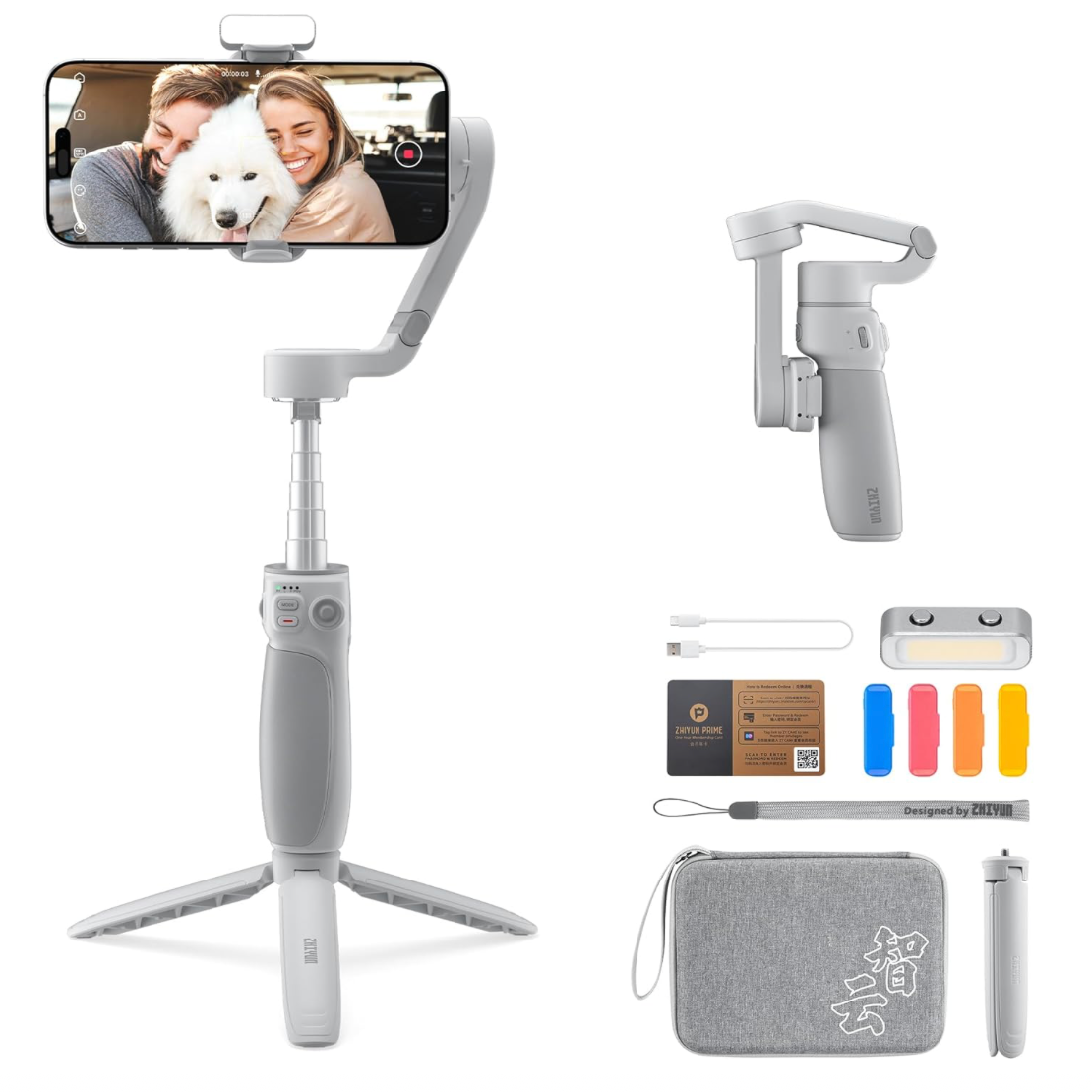 ZHIYUN Smooth Q4 Combo Smartphone Gimbal Stabilisator mit Eingebauter Selfie-Stick, 3 Achsen Handy Gimbal für iPhone, Kommt mit Fülllicht (mit Stativ)